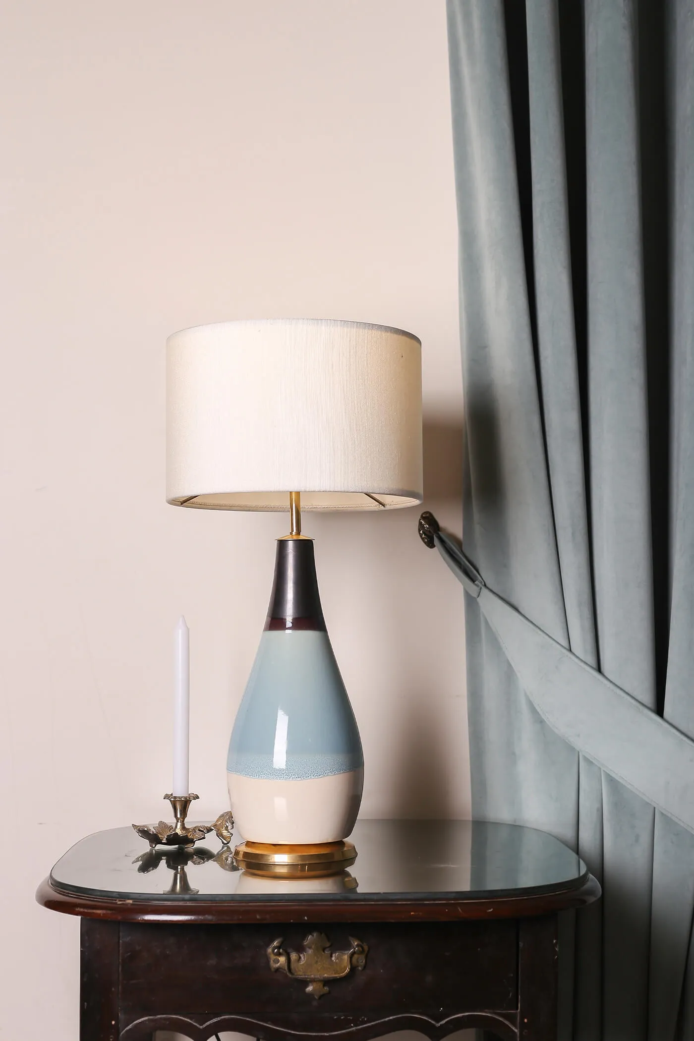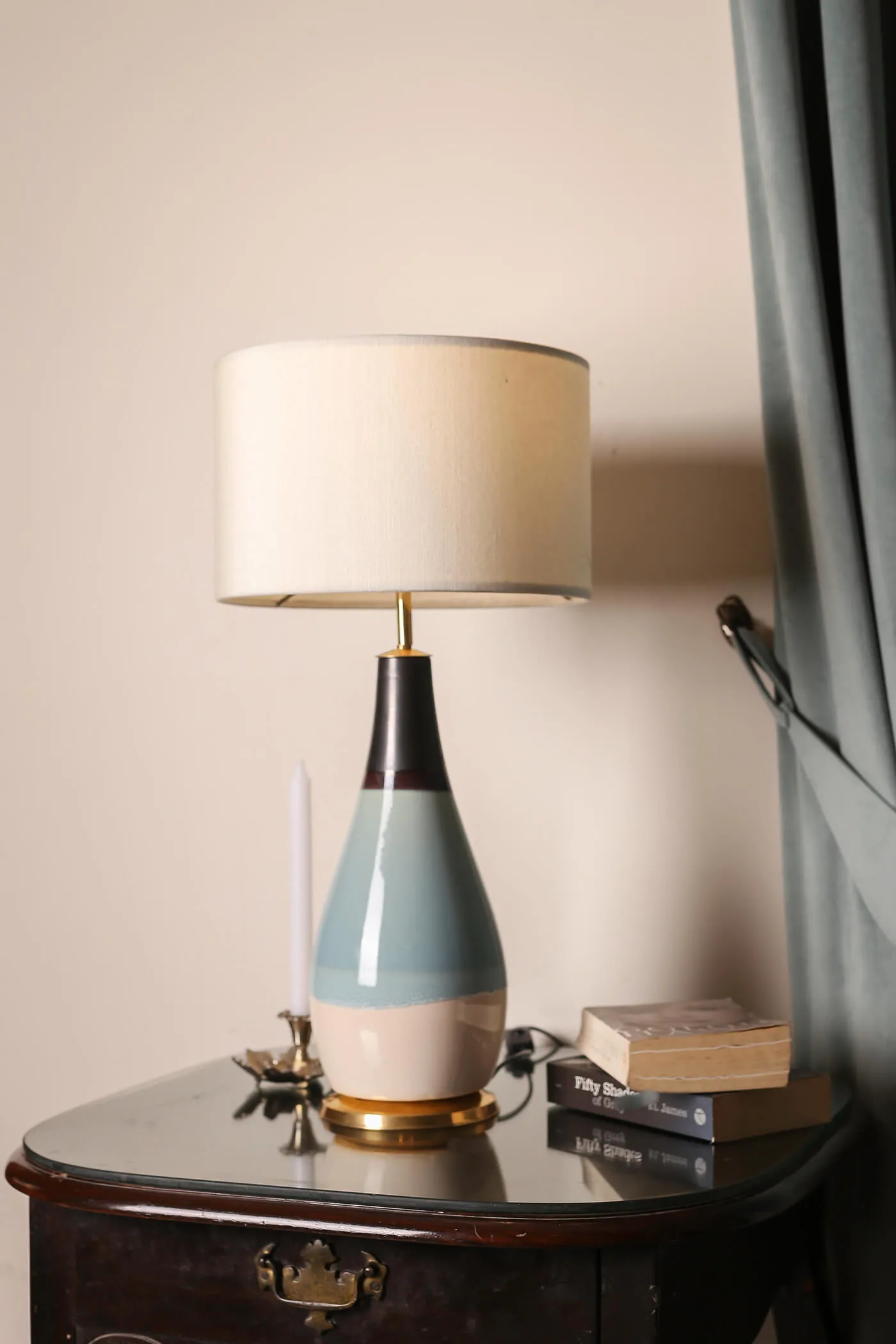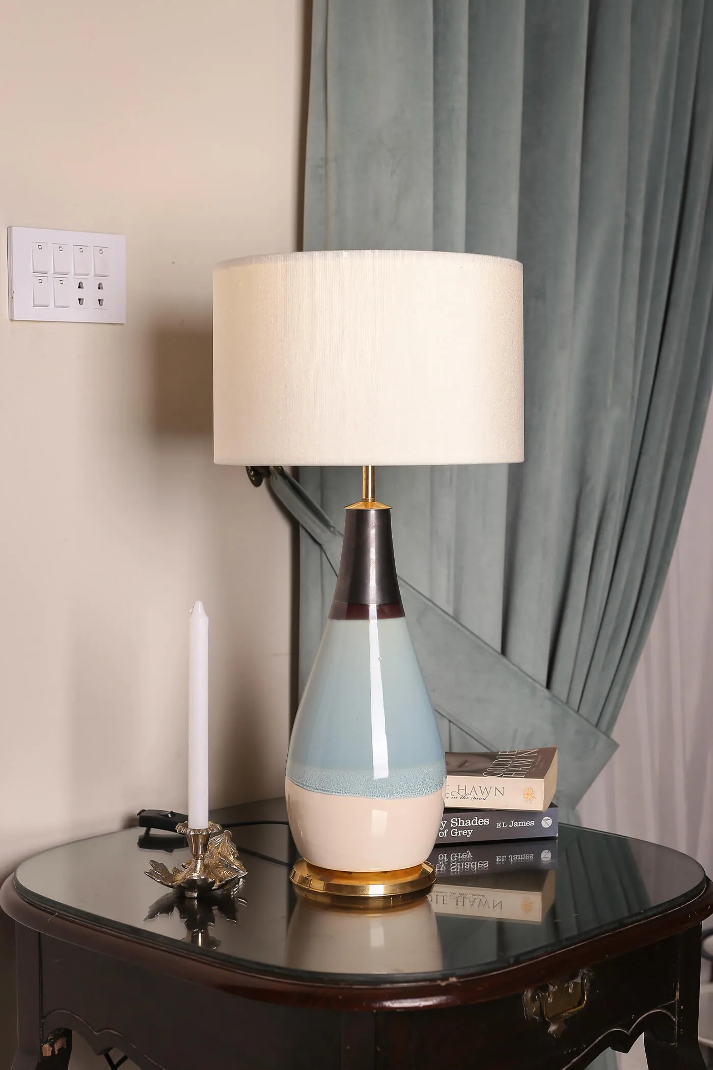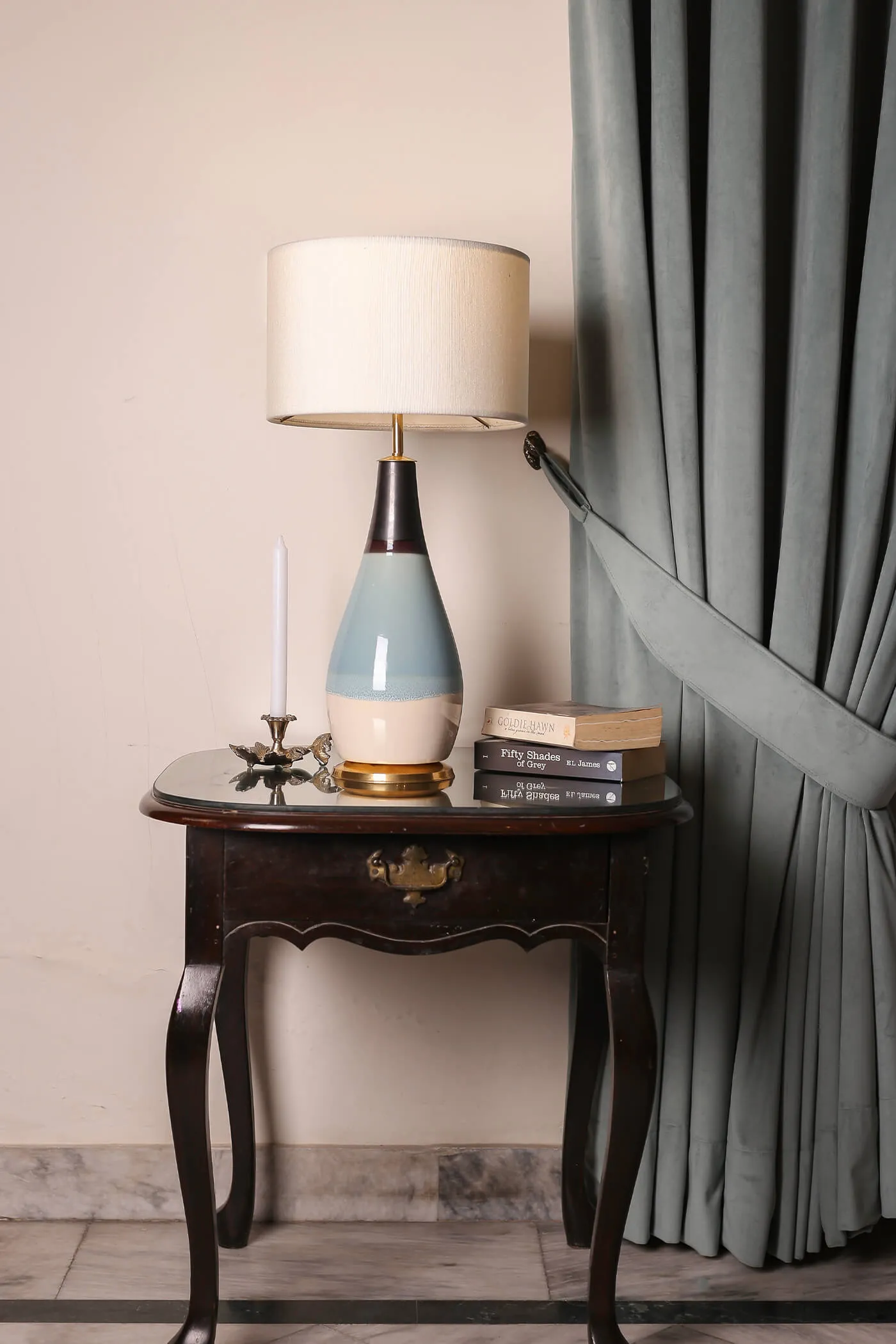 Crafted from high-quality ceramic. Offering durability and a smooth polished surface. The body of the lamp features a distinctive design with three sections, each adorned with a different shade with a brass rim at the base. The shade’s marble texture lends a sense of luxury and refinement. Elevating the lamp’s overall aesthetic and making it a stunning focal point in any room.