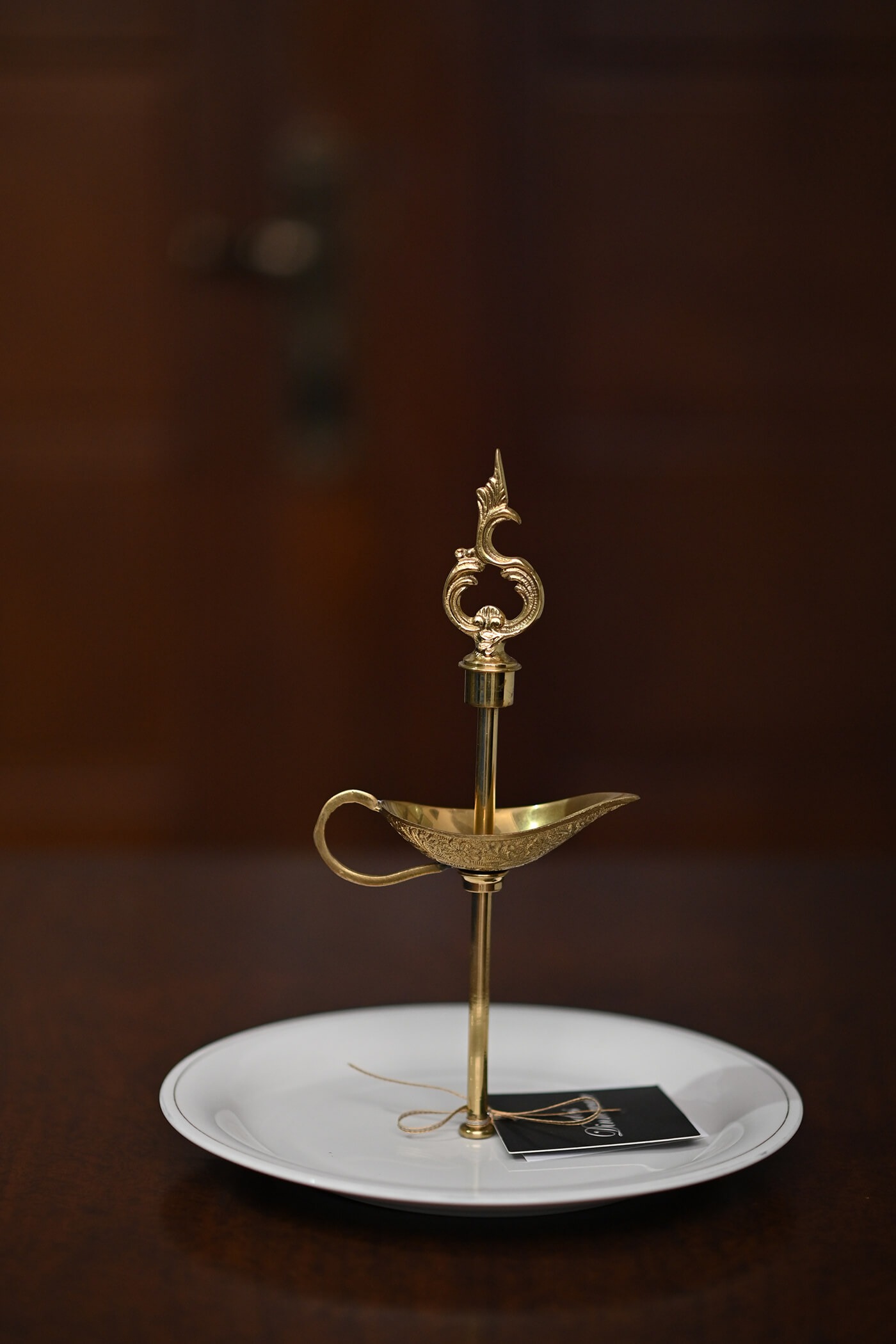 : A fusion of timeless elegance and functional beauty. The brass stand, with its intricate design and golden hue, serves as a striking accent piece, elevating the presentation of your culinary creations or decorative arrangements. Its sturdy construction ensures stability and durability, making it suitable for both everyday use and special occasions.