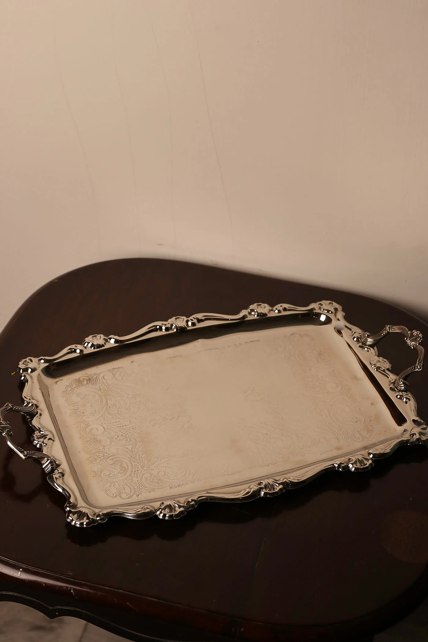 Fashioned from high-quality silver, the serving tray boasts a luxurious sheen